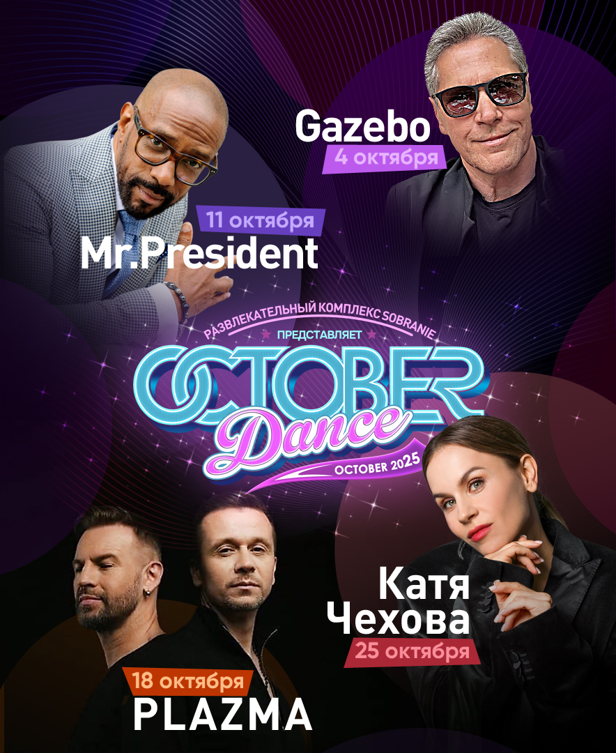 Бесплатные концерты в развлекательном комплексе SOBRANIE: Gazebo, Mr. President, Plazma и Катя Чехова — весь октябрь!